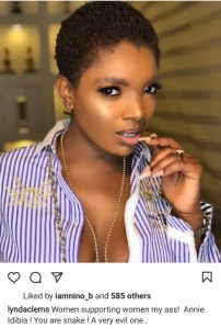 Actress, Lynda Clems has slammed Annie Idibia, calling her a ”snake and a criminal.”