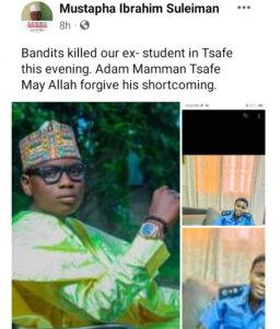 Suspected armed bandits invaded Tsafe town, the council headquarters of Tsafe Local Government Area of Zamfara State, killing three people including the son of the state’s Commissioner for Security and Home Affairs and former DIG, Mamman Tsafe.