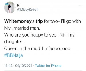 However, during the prize presentation on Monday, October 4th when the show host, Ebuka asked Whitemoney who he would be taking on his Dubai trip, he chose fellow reality star, Niyi.