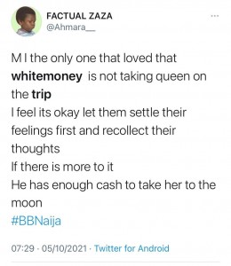 Many viewers of the show who had thought Whitemoney would choose Queen has taken to social media to react.