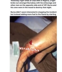 An injured fan has revealed what really went down at the Club DNA yesterday night where Nigerian singer Burna Boy and his gang members were present.