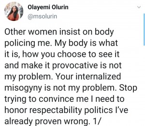 The lawyer named Olayemi Olurin responded, blasting the woman and every other person who tries to police her body and hypersexualize her for being endowed