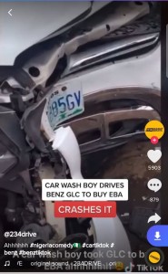10 thoughts on “Car Wash Guy Drives Client’s Benz GLC to Buy Eba and Ewedu, Crashes it Beyond Repair”