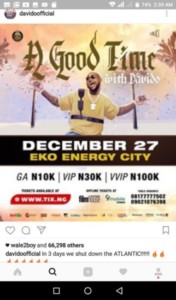 Davido can’t contain his excitement after the massive crowd that turned up for his music concert “A Good Time With Davido” in Lagos.