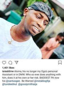 Aloma, his no longer my Oga’s personal Assistant or in DMW. Who so ever does anything with him, does it at his own or her risk. BADDEST PA now his @santusgee . Be Warned”.