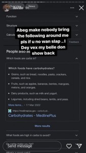 “I’m going back on my diet after today!! Cutting all rubbish out!! U go dey feel. Like say u dey work out for nothing! I don’t care what anyone who says diet is even more important than the work out itself! I’ve actually seen the difference now..I’ve been working out for like 3 weeks now without my diet and lemme tell you I didn’t lose no weight!”.