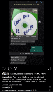 “Wow I gave this Dami Duro demo to Cecil Hammond in 2011 hoping to get signed outside a concert haha !!!! I NEED THIS CD!! LIFE IS CRAZY !! I THANK GOD !!”