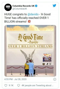 Davido‘s album “A Good Time“, has officially crossed one billion streams across platforms.