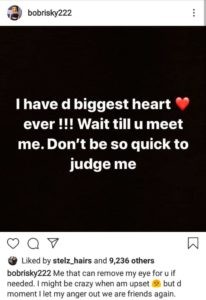 “Don’t be so quick to judge me, I have the biggest heart” – Bobrisky writes