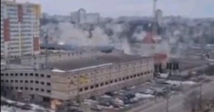 A major shopping centre in the city was hit as a barrage of Grad rockets and Smerch missiles was fired from Russian positions. Twitter user @IAPonomarenko also shared a video where an area was blanketed by explosions.