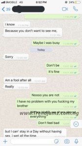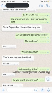 In screenshots of the chat shared online, it is apparent that the rival is having sexual relations with the Twitter user’s boyfriend and also his brother.