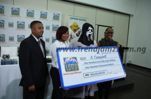 A Jamaican man who won a lottery turned up in a mask to claim his £1million prize (N465 million).