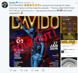 However, in an article dated January 28, where the news outlet did a review of the singer’s event, they wrote in part “considering the anticipation attached to this gig, which has been talked up as a significant event for Davido – he’s nearly sold out the O2, a considerable leap toward the mainstream.”