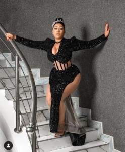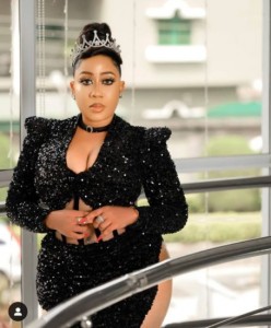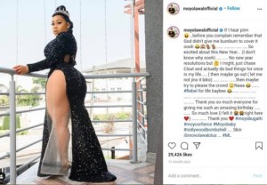 Nollywood actress Moyo Lawal has shared a sultry photo with her thigh and hint of her bum on display.