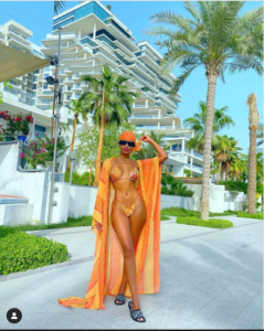 Kenyan socialite, Huddah Monroe, who is currently on vacation in Dubai, shared these hot bikini photos and accompanied her post with some words of prayers against spiritual attacks from enemies