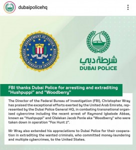 The Director of the Federatal Bureau of Investigation (FBI), Christopher Wray has praised the exceptional efforts exerted by the United Arab Emirate, represented bu the Dubai Police General HQ, in combating transnational organised cybercrime including the recent arrest of Raymod Igbalode Abbas, known as “Hushpuppi” and Olalekan Jacon Ponle aka “Woodberry” who were taken down in operation “Fox Hunt 2”.