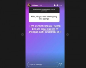 When asked by a fan if he has intentions of going into acting, Kiddwaya stated that he already has a Hollywood gig which his agent is working on