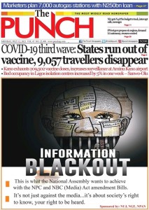 Papers like The Sun, Punch, Vanguard, The Guardian, Tribune splashed out the same ”Information Blackout’ headline.