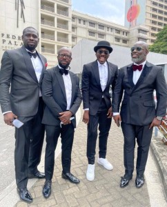 The couple is celebrating their wedding ceremony in Lagos and so many celebrities are pulling all the stops, and “blocking all roads” in dapper and stunning outfits to share in their joy.