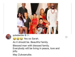 “Yes ooo Sarah. As it should be. Beautiful family. Blessed man with blessed family. Everybody will be living in peace, love and jolly.