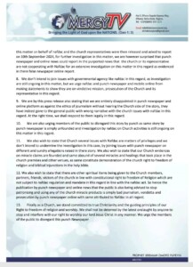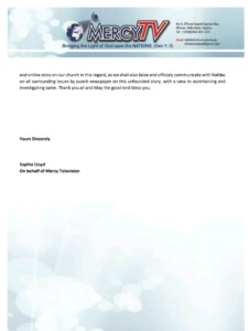 The media department of Mercy Television, on behalf of Christ Mercyland Deliverance Ministry, has issued a formal response to an article published by Punch Newspaper and its online platform on September 8th, 2024.