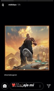 Nigerian music star, Wizkid shared a photo of the album art cover for Burna Boy’s new album “Twice As Tall” on his Instagram story on Friday evening.