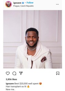 Ace Nigerian comedian, Otaghware Otas Onodjayeke, professionally known as I Go Save, has taken to his IG page to flaunt his new hair transplant.