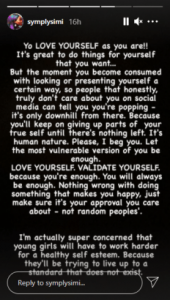 10 thoughts on “ove Yourself The Way You Are – Singer Simi Preaches Self Love”