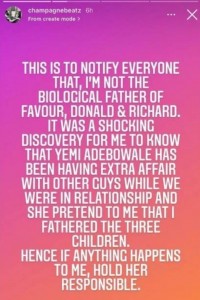 He alleged that all three kids are not his and he just discovered this.