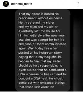 However, a woman claiming to be a sister to Champagne Beatz’ partner has said that the music producer is making assumptions and has not carried out a DNA test to ascertain if the kids are his or not.