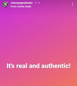 Champagne took to his Instagram Stories to stand his ground, insisting his allegation against his partner is “real and authentic”.