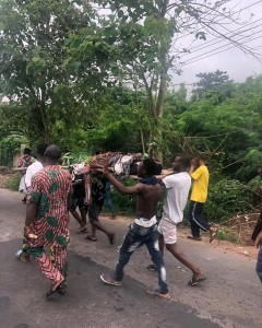 Scores of angry youths in the capital city conveyed the corpse as they protested along the Agodi Secretariat Road.