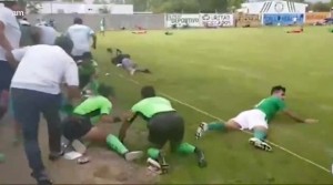 The tense scene occurred during an amateur match in the western Honduran town of La Jigua.