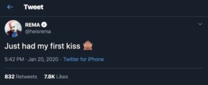 6 thoughts on “Rema Reveals He just Had His First Kiss”