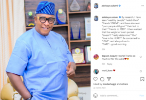 Actor Adebayo Salami preached generosity in his recent post on Instagram where he revealed that being generous comes from the heart and not the condition of ones pocket.