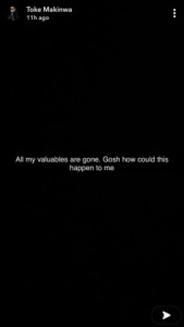 Toke Makinwa robbed of all her valuables in London December 5, 2022 For Online PR / Hype / Music Promotion Call 08074130688 Follow @TrendJamz Media personality, Toke Makinwa has revealed that she was robbed in London. The media personality who shared the news on Snapchat, further disclosed that her valuables were stolen. See Toke’s Snap below… Entertainment & GistToke Makinwa - by Yung Zeelee