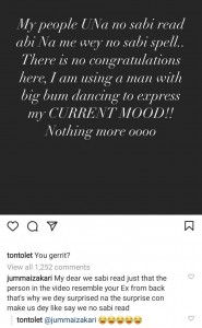 In another post, Tonto said that she just shared the video to show her current mood and there’s “nothing more” to it.