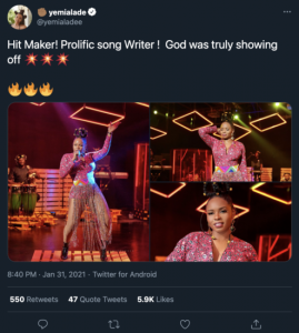 The award-winning musician made the said post on her verified social media handle on the popular social media platform, Twitter.