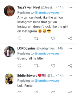 According to the singer and actor, most girls look different from photos they share on Instagram. He wrote on Twitter;